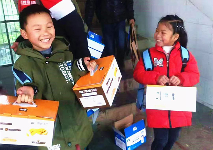 他们欢呼雀跃着奔向运输卡车,争先恐后帮工作人员搬运牛奶,这天的天气虽然阴沉寒冷,可孩子们脸上却洋溢着幸福暖意——感知被爱,也同时拥有给出爱的可能。