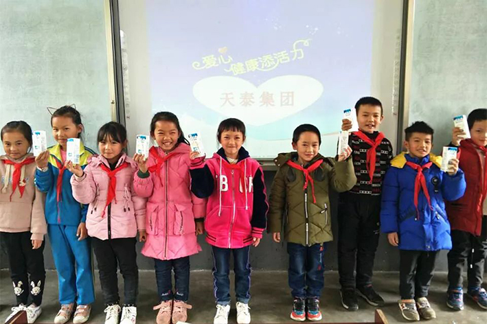 本着“只做雪中送炭,不做锦上添花”的公益原则,天泰公益基金会在2013年底设立“爱心牛奶”项目,让贵州两所希望小学近500名师生,在校期间每天喝到一盒牛奶,不仅增加营养、强身健体,更是让爱在他们心底生根发芽,让发自内心的幸福感,陪伴孩子们的每一天。